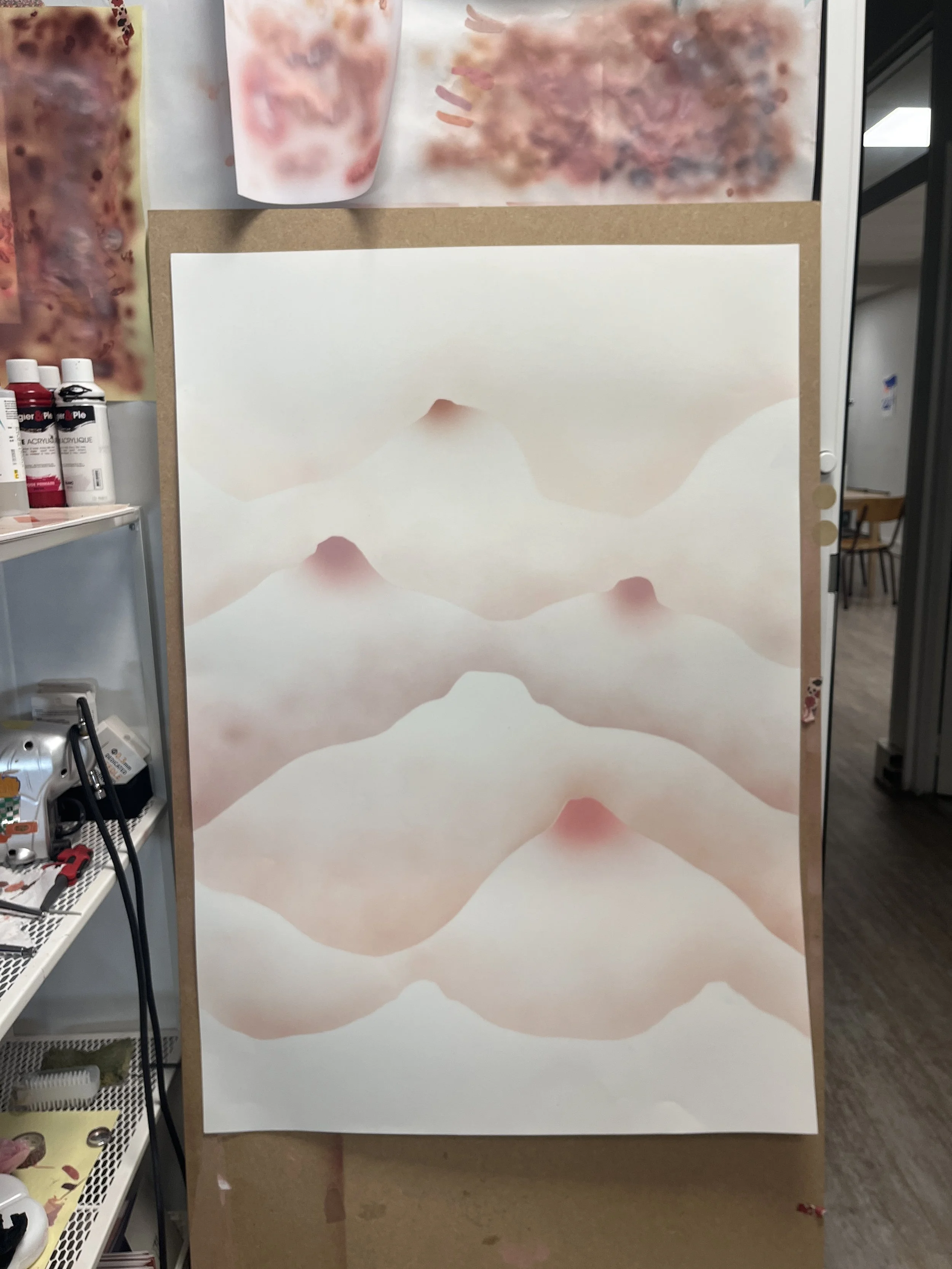 Encre acrylique à l’aérographe sur papier 350g.
